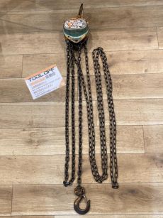 チェーンブロックはチェーンを利用して重量物を巻き上げることができ、作業自体が人力でもテコや滑車の原理で作業できるところがポイントです。(電動式のものもあります)