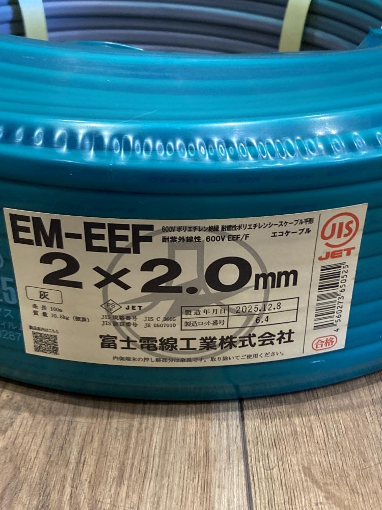 富士電線/EM-EEFケーブル(灰)/2×2.0