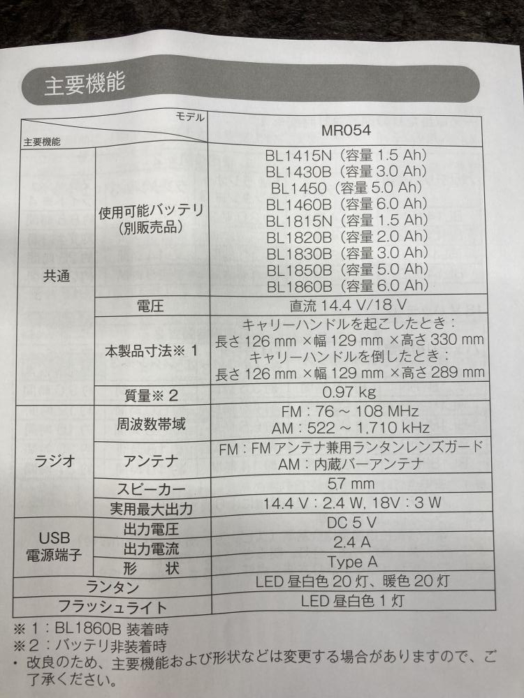 makita マキタ/充電式ランタン付ラジオ/MR054
