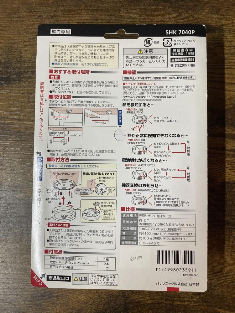 パナソニック Panasonic/住宅用火災警報器/SHK7040P