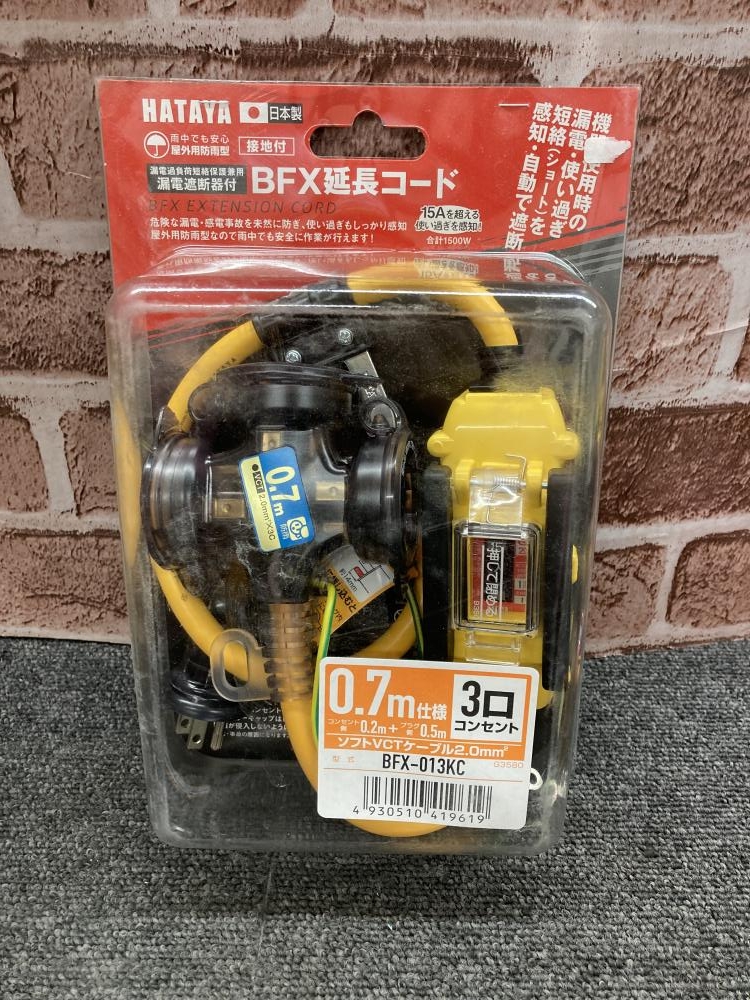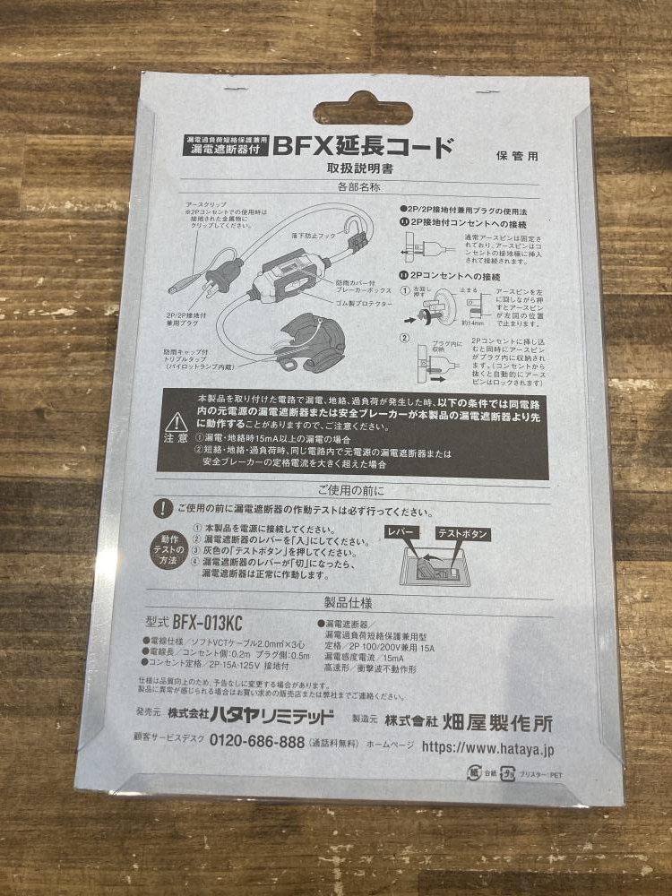 HATAYA ハタヤ/漏電遮断器付延長コード/BFX-013KC