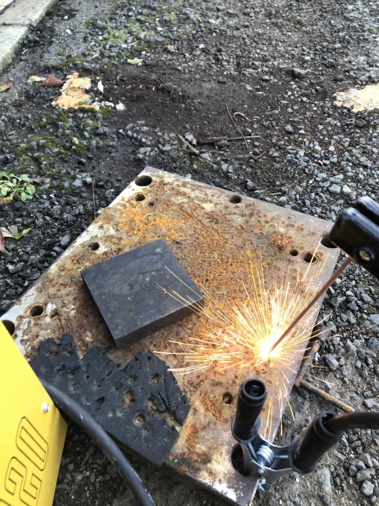 溶接棒が湿けており、火花が散りにくくなっております。