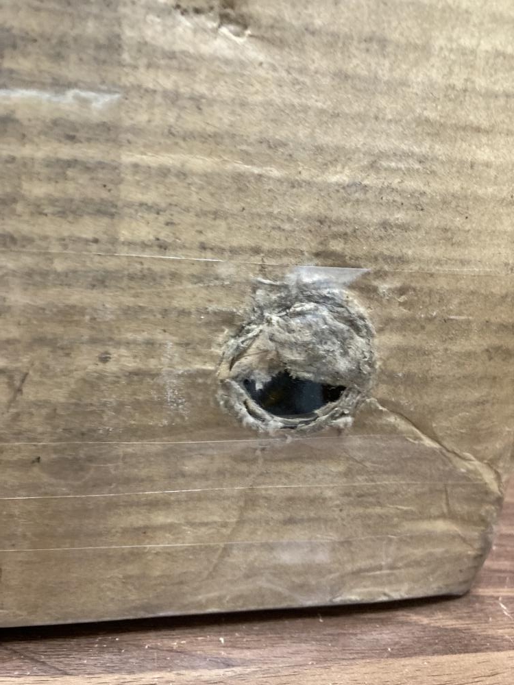 段ボールの底に穴が空いてます。