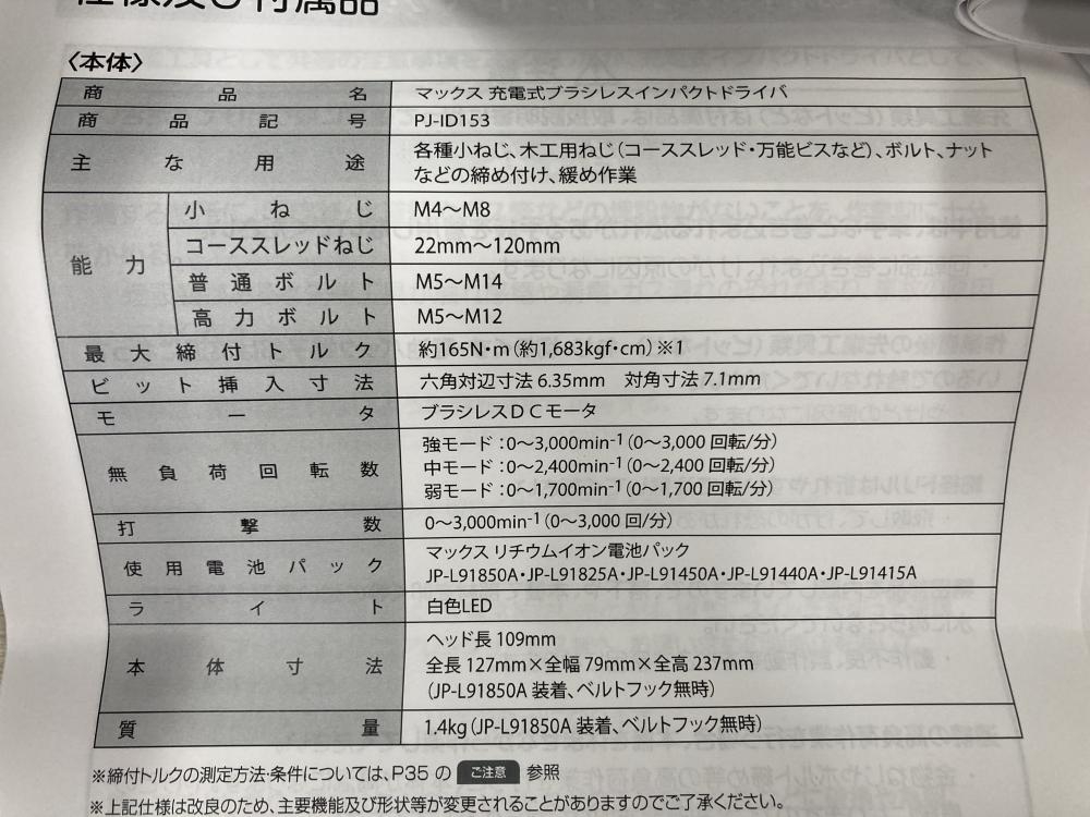 マックス MAX/充電式ブラシレスインパクトドライバ/PJ-ID152K-B2C/1850A