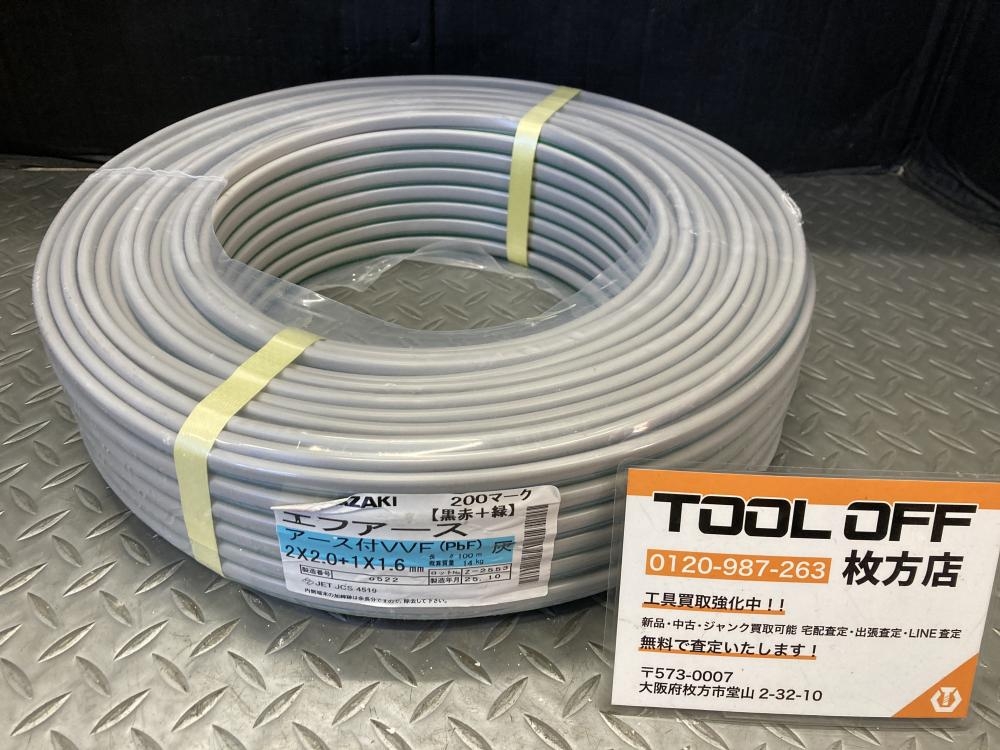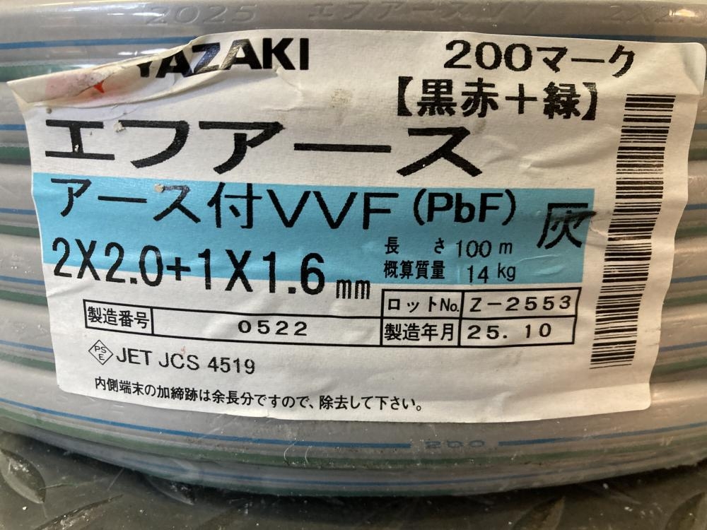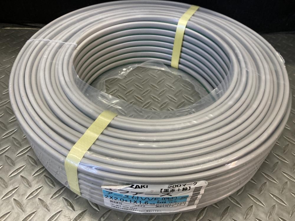 YAZAKI ヤザキ/エフアースアース付VVF/2×2.0+1×1.6黒白+緑