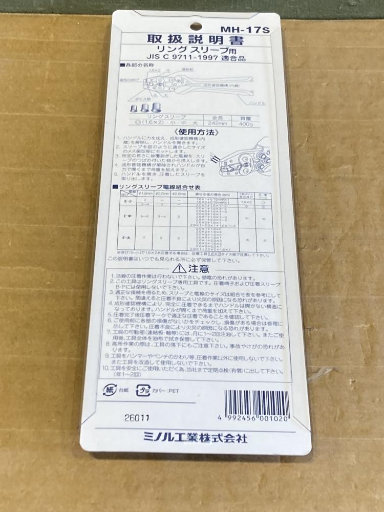 ミノル工業 マーベル/圧着工具 ハンドプレス/MH-17S