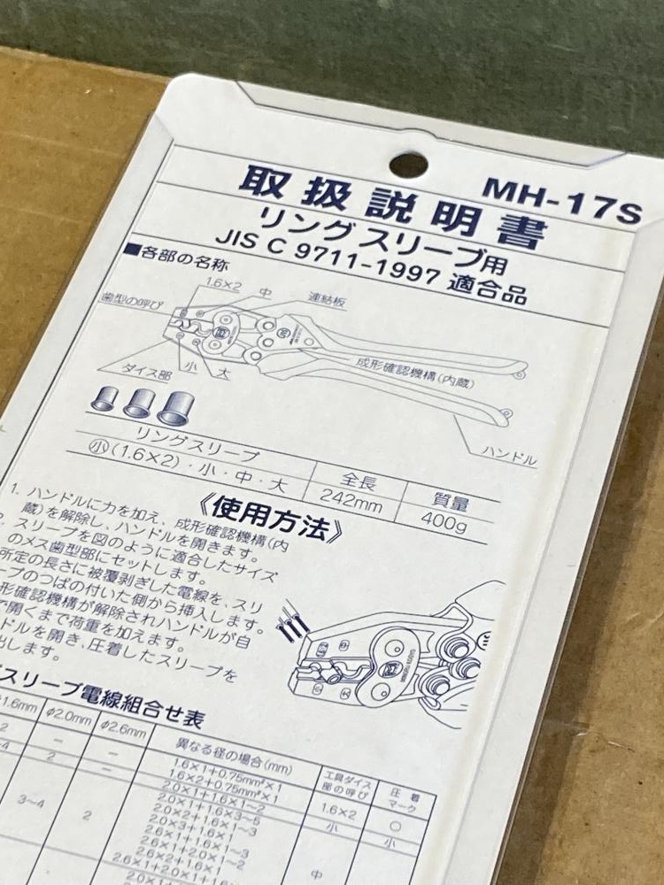 マーベル/圧着工具 ハンドプレス リングスリーブ用/MH-17S