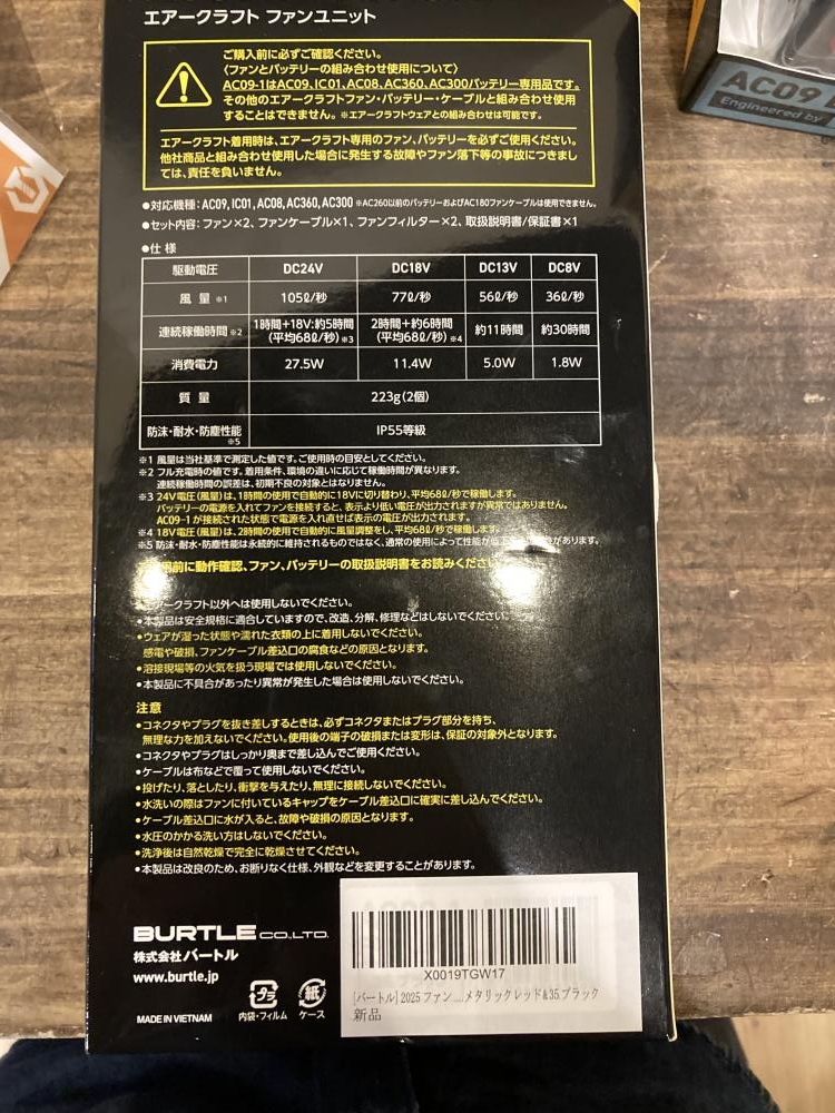 BURTLE バートル/空調服用ファンバッテリーセット/AC08 AC08-1