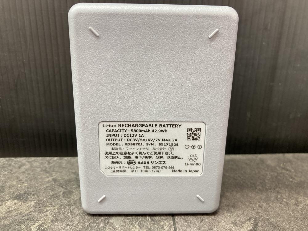 サンエス/空調服用ファン・バッテリーセット/RD9870J/充電器アダプター無し